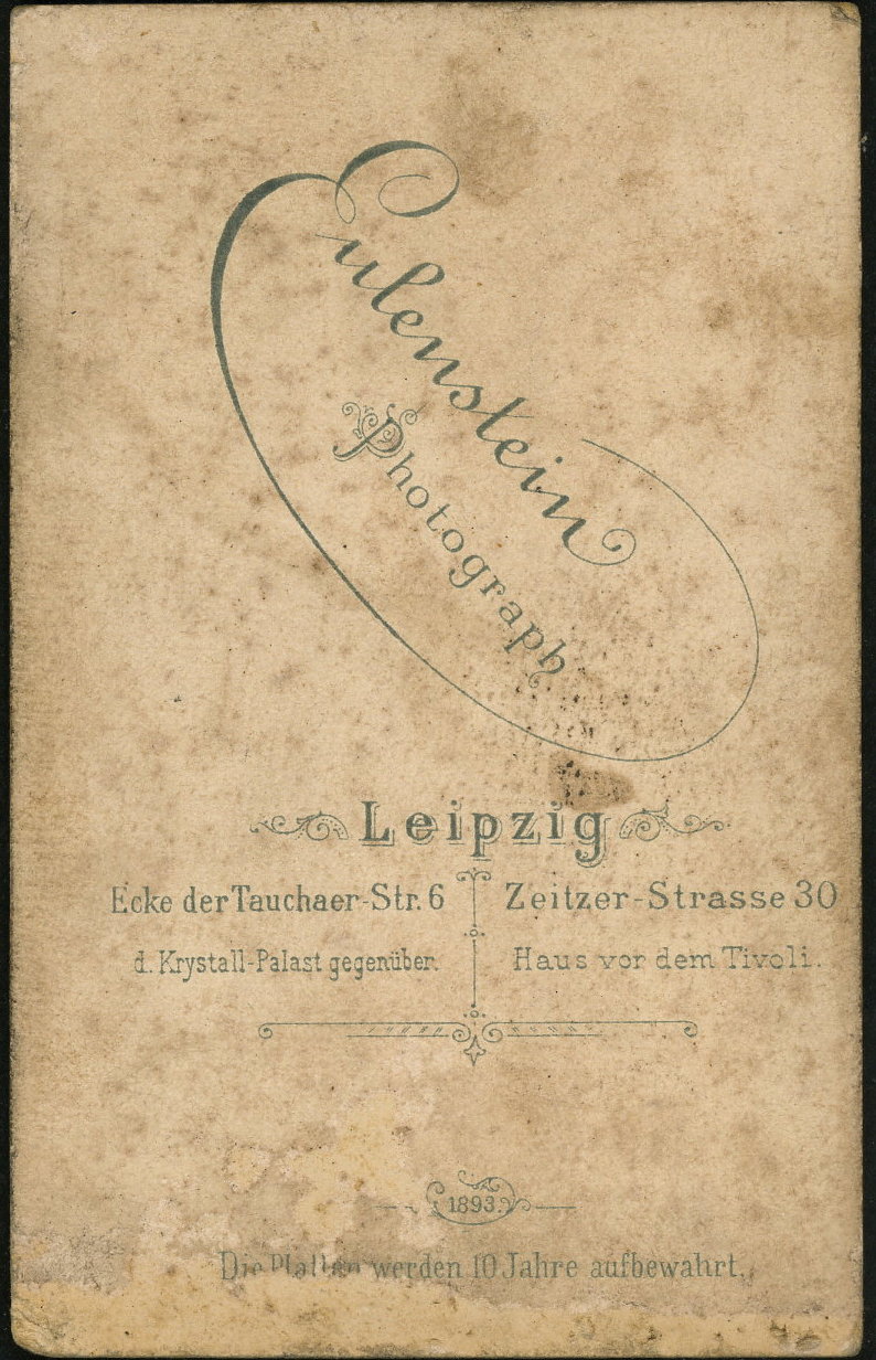 EulensteinEcke der Tauchaer-Straße 6, LeipzigZeitzer-Straße 30, LeipzigDate: reverse: 1893Cat: 2025-3987